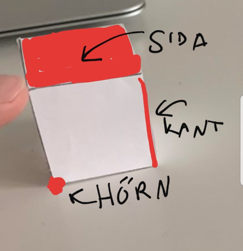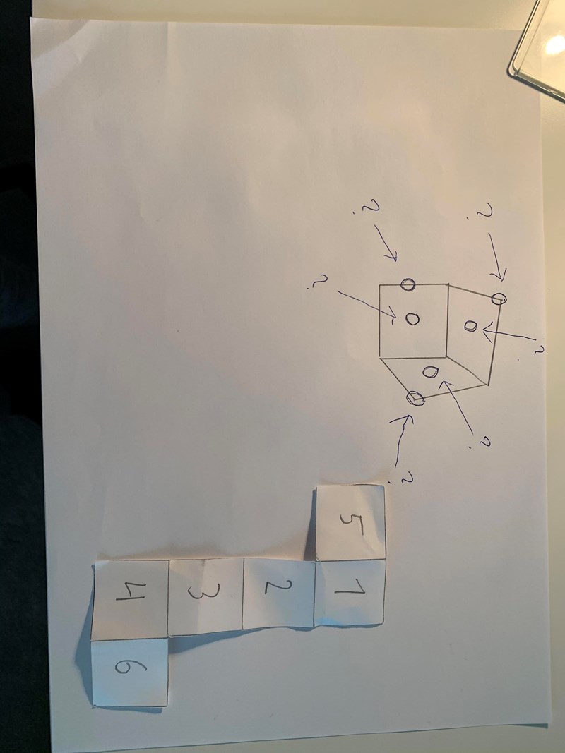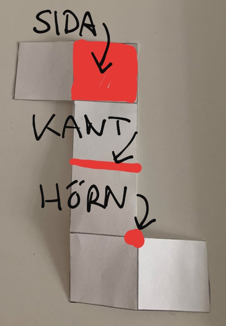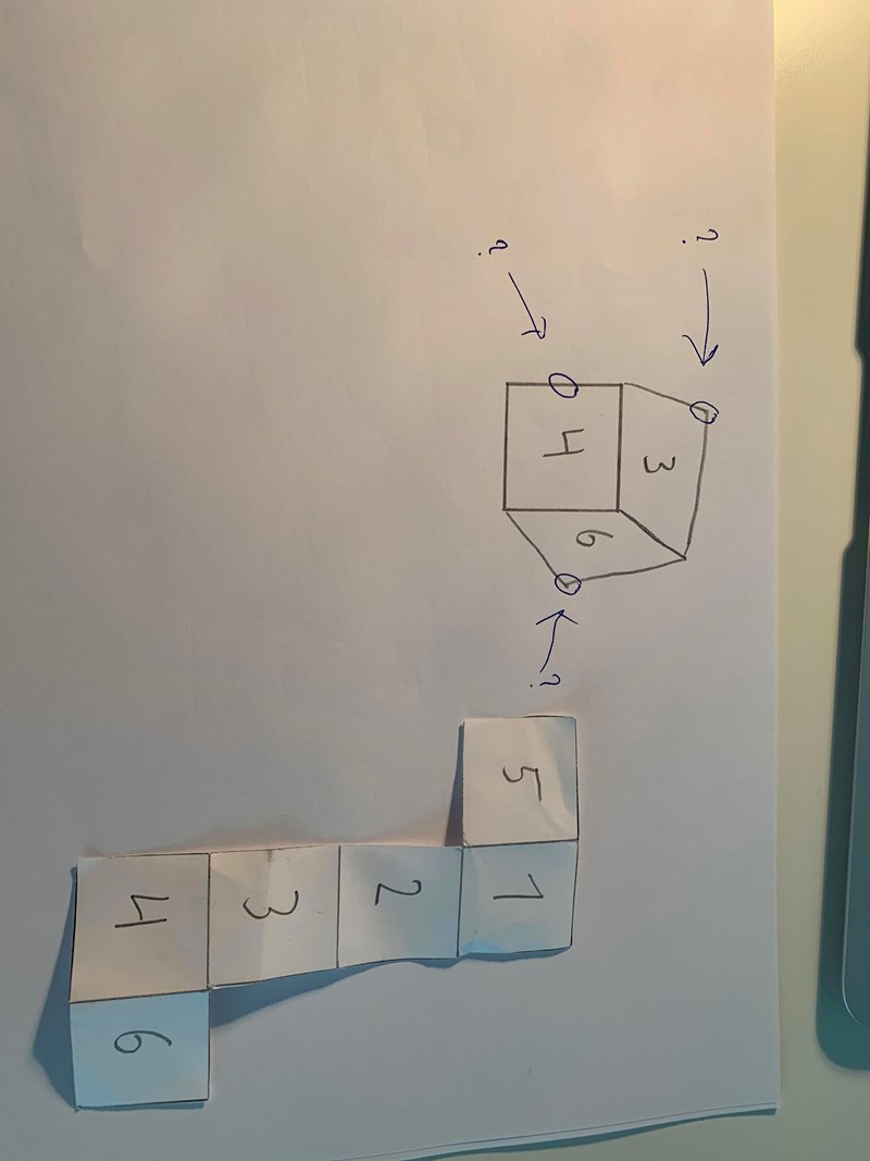 Olika siffror fanns utsatta på formernas sidor, kanter och vikningar, (sidorna på kuberna i frågorna var helt blanka, utan referenser som färger eller mönster) Hur vet man vilket nummer sidor, kanter etc ska ha? Jag skickar med en bild på en kub.