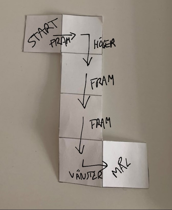 Följ sedan figuren ruta för ruta med fingret och fyll i kubens sidnummer i rutorna. Nu spelar riktningen roll. Du kan svänga vänster, svänga höger eller gå rakt fram, helt beroende på hur den uppvikta figuren ser ut.