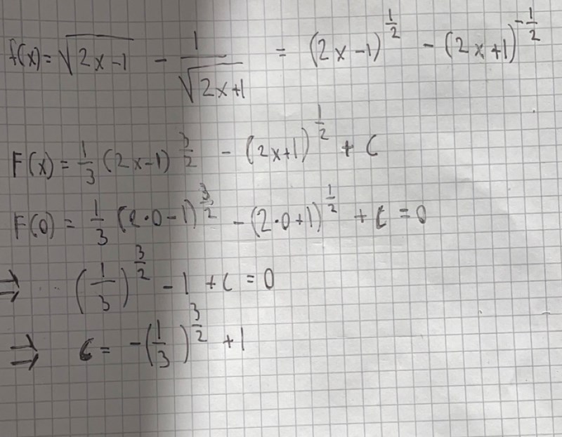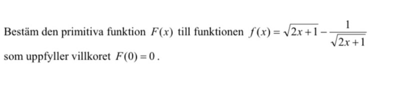 Om du dividerar detta med 3 så får du rätt svar. Alltså är primitiva funktionen 1/3 × (2x + 1)^1,5