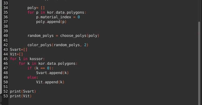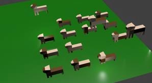 Så här har jag förstått det hittills: det finns en geometrisk modell för ett får i form av en lista med polygoner. Ni har ett antal får, så det finns en lista av sådana polygonlistor. Nu vill ni färga varje enskild polygon antingen svart eller vit slumpmässigt.