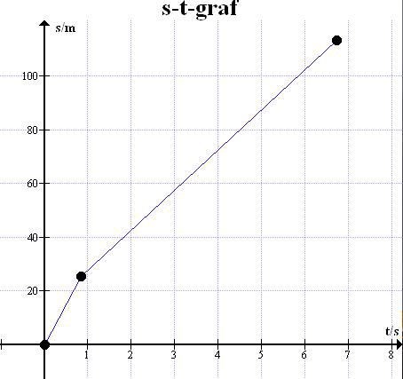 Så här långt har jag kommit, men jag vet inte hur jag ska gå vidare. Det ska ju vara en logaritmisk kurva och inte en linjär. Jag tänker att jag borde ta ut punkter på t axeln tex: 1,5, 2, 2,5, 3, 3,5, 4, 4,5, 5, 5,5, 6 och därefter beräkna sträckan för varje punkt för att slutligen sätta in i grafen för att få en "logaritmisk kurva". Är det rätt metod? Sätter jag då in värdena, byter ut "5,88" med tex 1,5, i formeln nedan? Och sedan lägger jag till reaktionssträckan (25,2 m)?