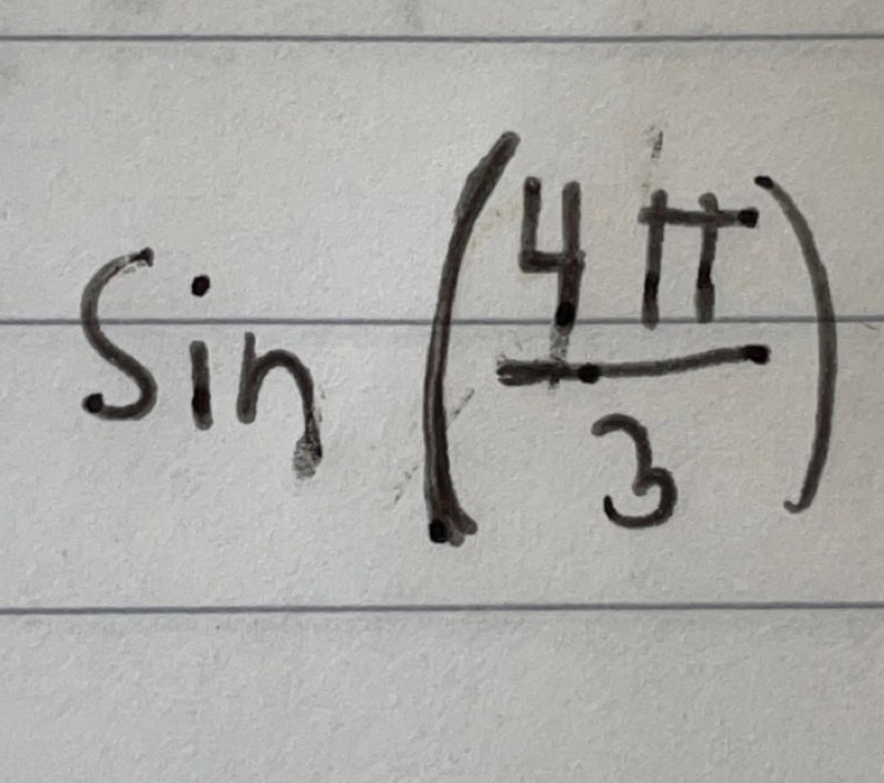 Hej! Hur kan jag lösa denna utan att använda en räknare? Vet att det är samma som sin(240 grader) men vet inte hur jag kan få fram utan räknare på denna typ av tal som inte är standardvärde