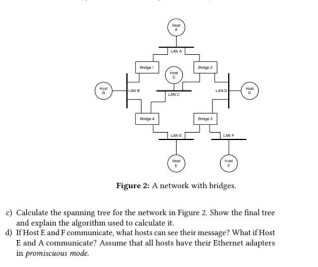 Hej! Jag har problem med en fråga om spanning tree kalkyl för en nätverk. Jag skulle verkligen uppskatta hjälp med att förstå hur man ska tänka. Jag har läst i boken "Computer Networks and Internets" av Douglas E. Comer men förstår verkligen inte processen då boken inte alls förklarar hur man ska ta sig till väga. Jag skulle verkligen uppskatta hjälp med fråga C och D!