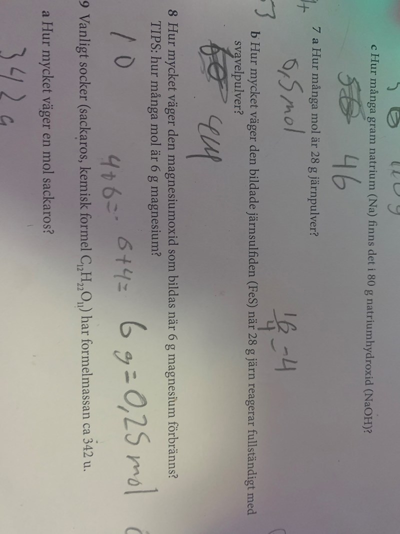 Betyder det att jag ska ta 28 gram + 1 mol svavel (32 g)?