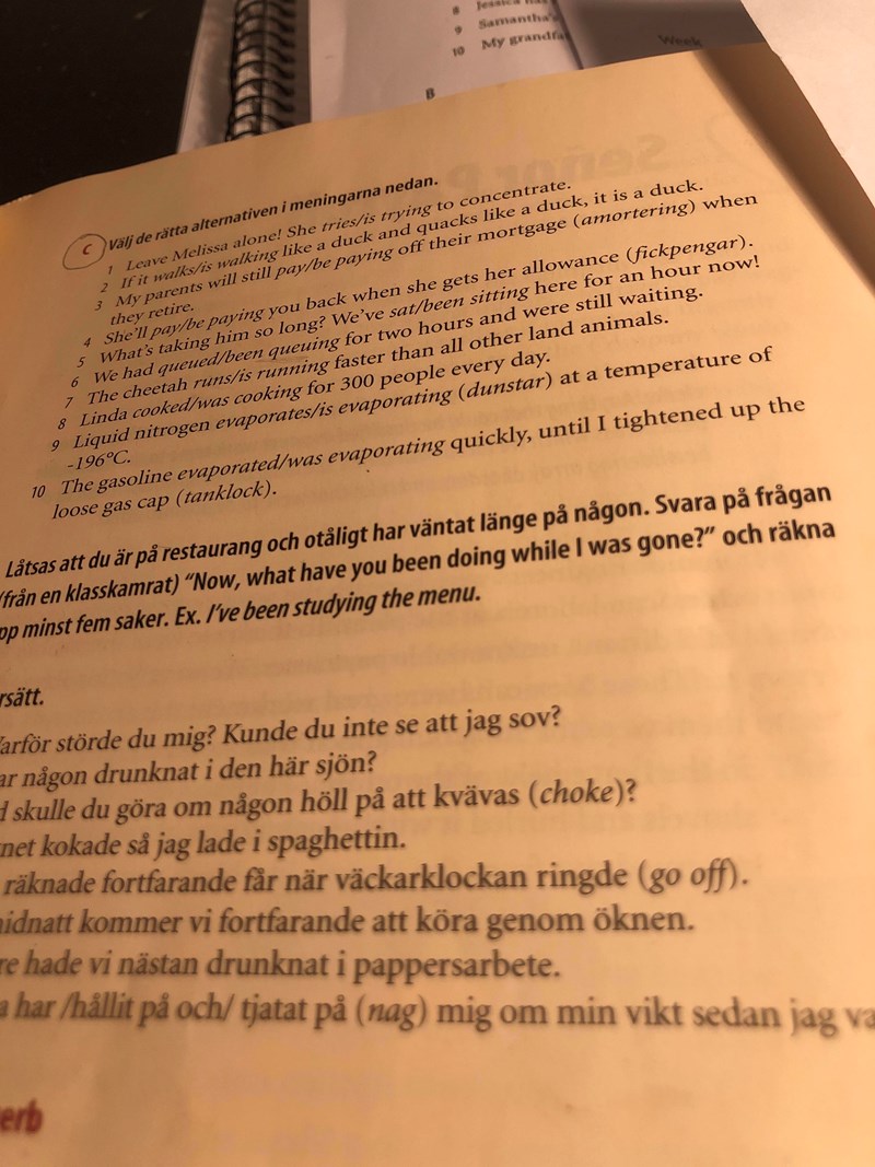 På 10:an ska svaret vara was evaporating men varför blir det den och inte den andra?