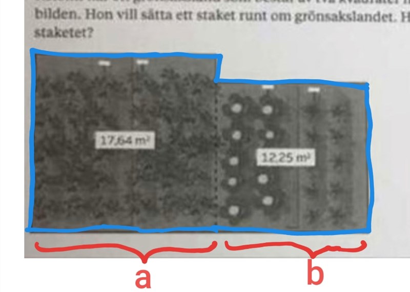 När du har uttryckt omkretsen med hjälp av a och b så bör du ta reda på hur mycket a och b är.