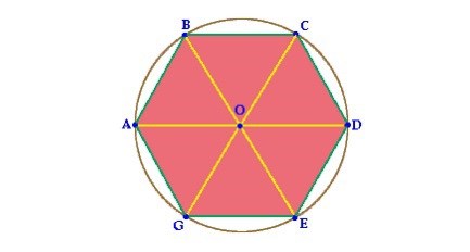 Bilden visar en regelbunden 6-hörning inskriven i en cirkel.