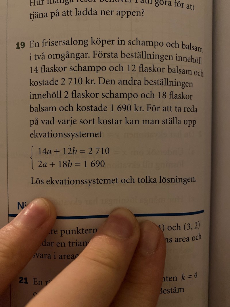 Dividera både (1) och (2) med två (blir enklare att räkna då)