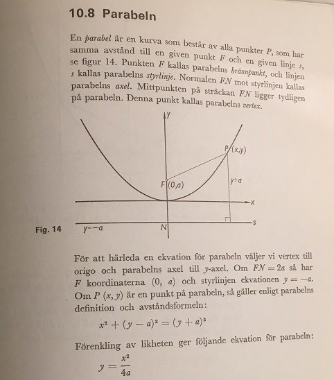 vilket vi känner igen som ekvation för parabeln.
