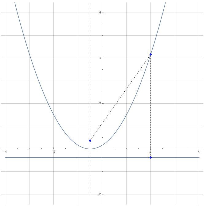 Sedan är det bara att rita… I figuren nedan är och dess funktionsvärde inritat för att illustrera de lika avstånden.