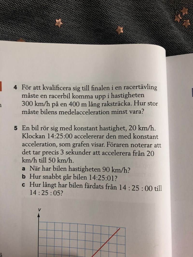de vanligaste sambanden mellan sträcka , hastighet, acceleration och tid fungerar i de flesta fall alldeles utmärkt att lösa uppgifter av den här typen. Det finns ibland fiffigare vägar.