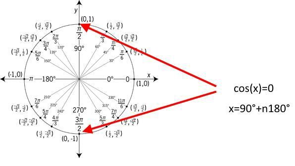 Hur ger den första fallet x = +- 90˚+ n • 360˚ ?