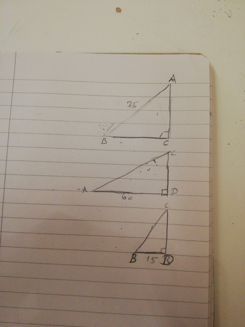 Ett bra knep när man har den här sortens uppgifter är att rita upp alla trianglar brecvid varann, vridna så att de alla pekar på samma sätt. Då ä rdet mycket lättare att se vilka sidor som motsvarar varandra. Gör det och lägg upp bilden här.