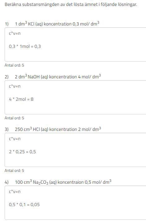 Ser det ok ut? (glömde att skriva mol efter svaren)