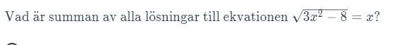 kvadrera båda sidorna, 3x^2 - 8 = x^2