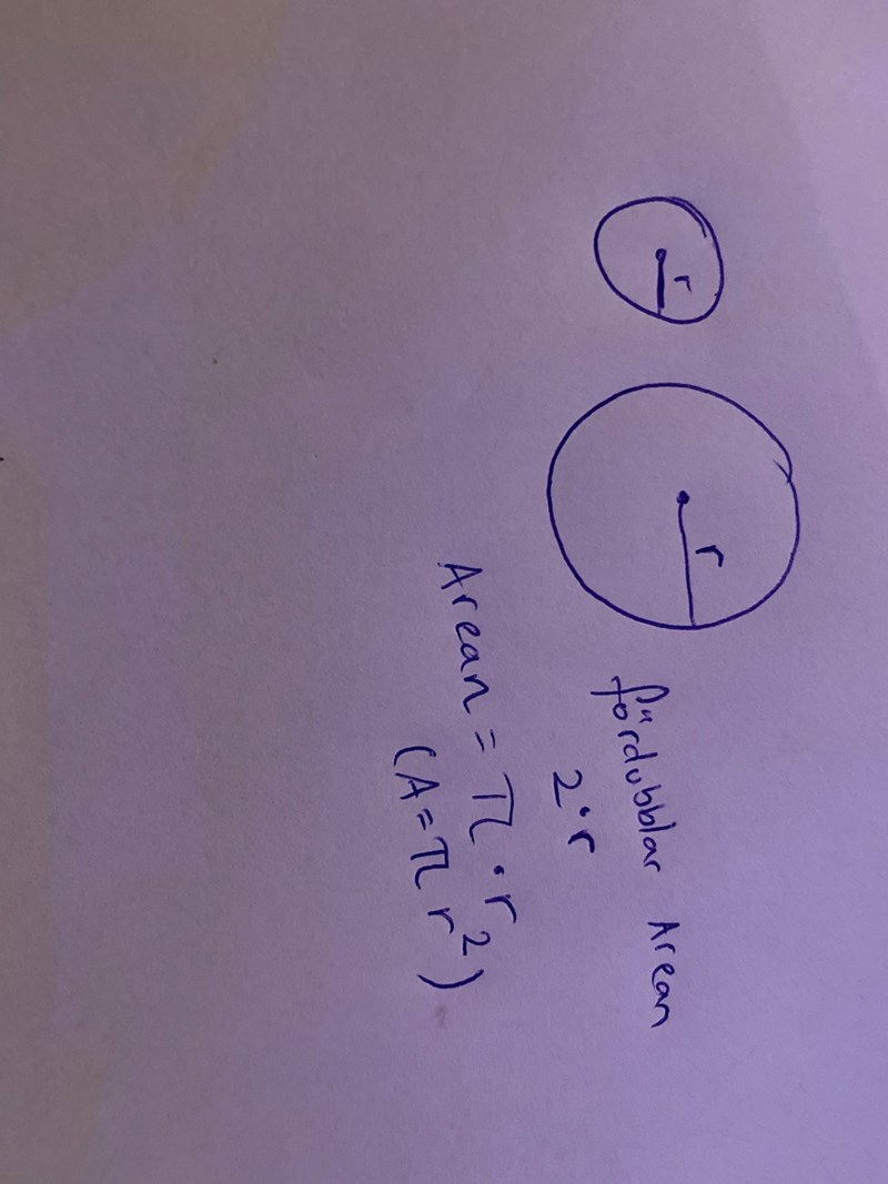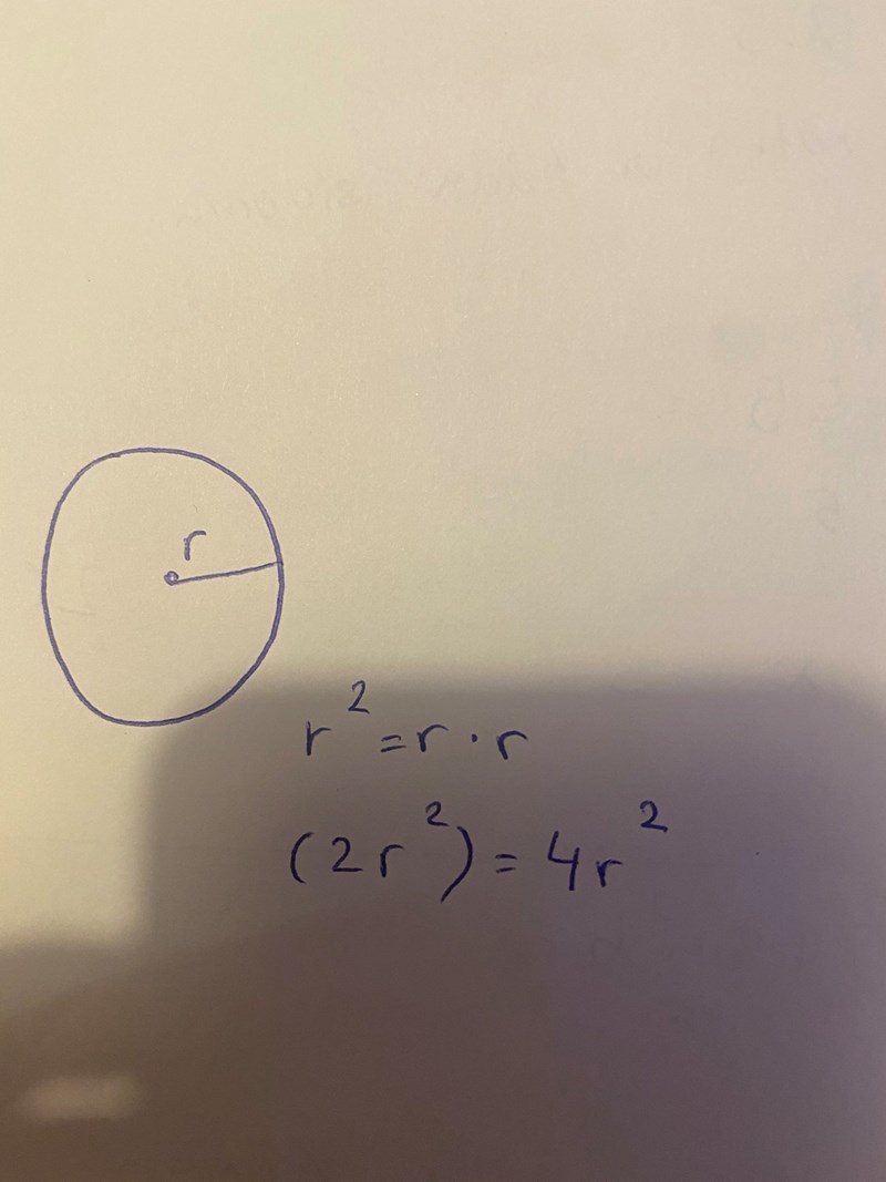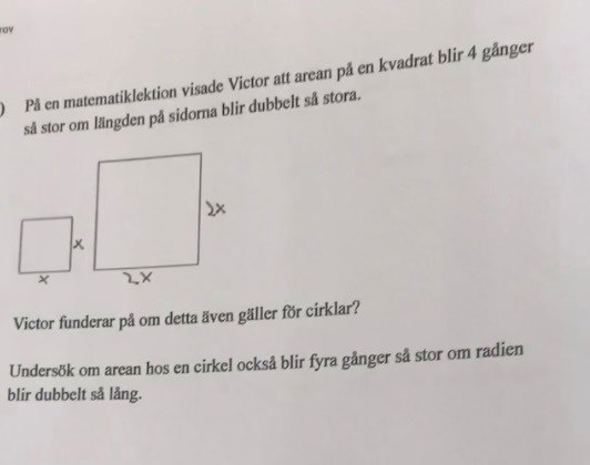 Frågan är om arean blir 4 gånger så stor om radien ökas från r till 2r