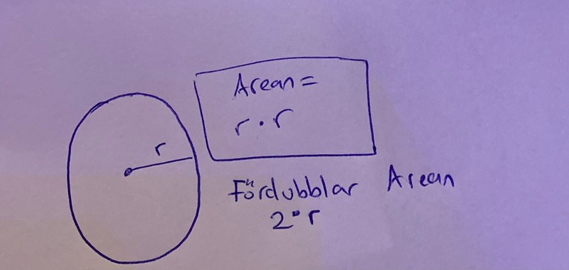 Jaha så arean blir fyra gånger så stor om radien blir dubbel så lång