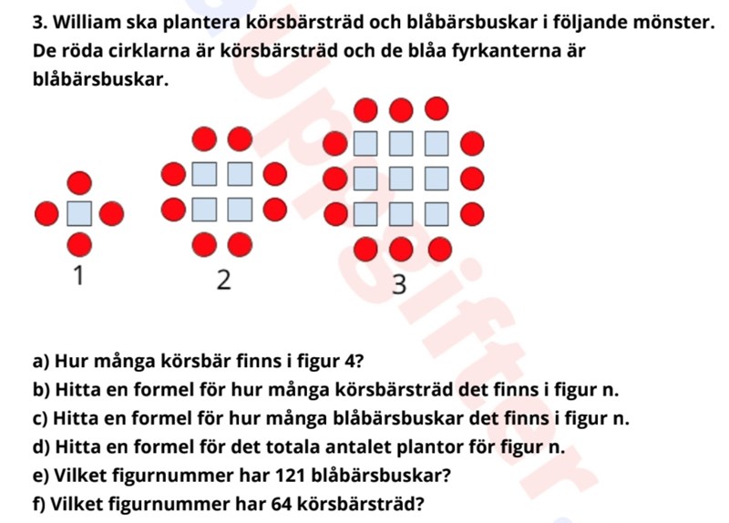 Gällande fråga a, vet du hur många körsbär det finns per träd? Eller har de skrivit fel i boken, dvs att de menar körsbärsträd? Du kan inte räkna ut fråga a utan antal körsbär per träd.