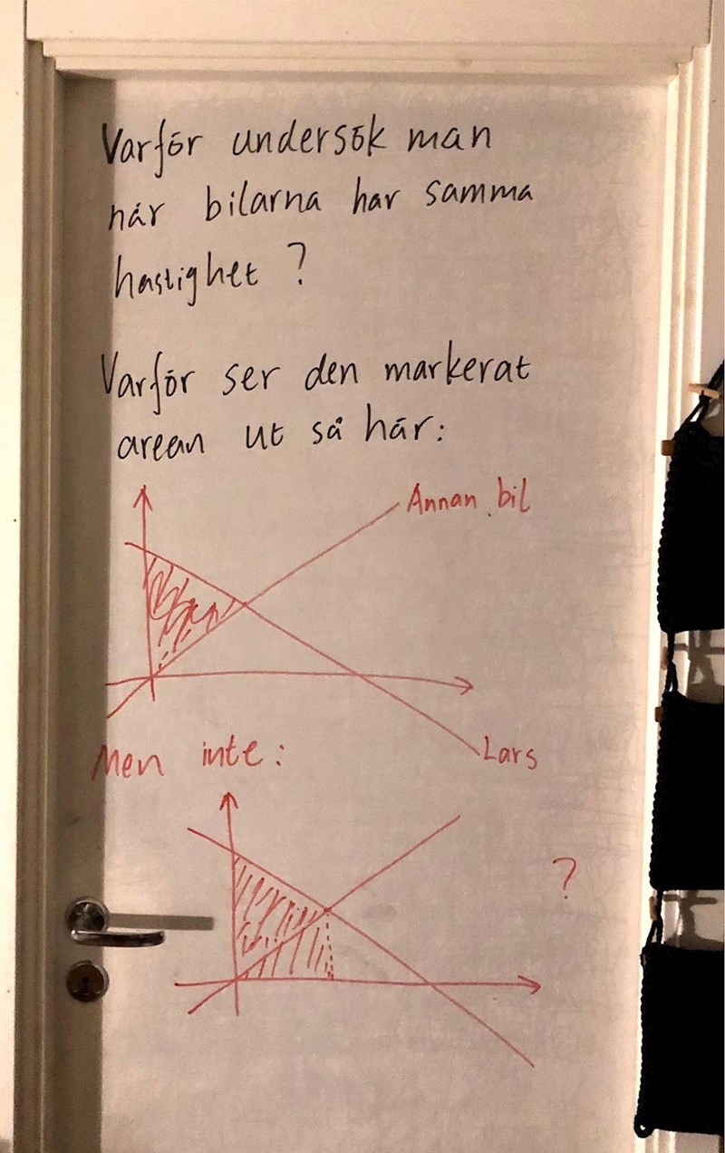 Varför behöver vi veta när båda bilarna har samma hastighet (vad är den information bra för?)