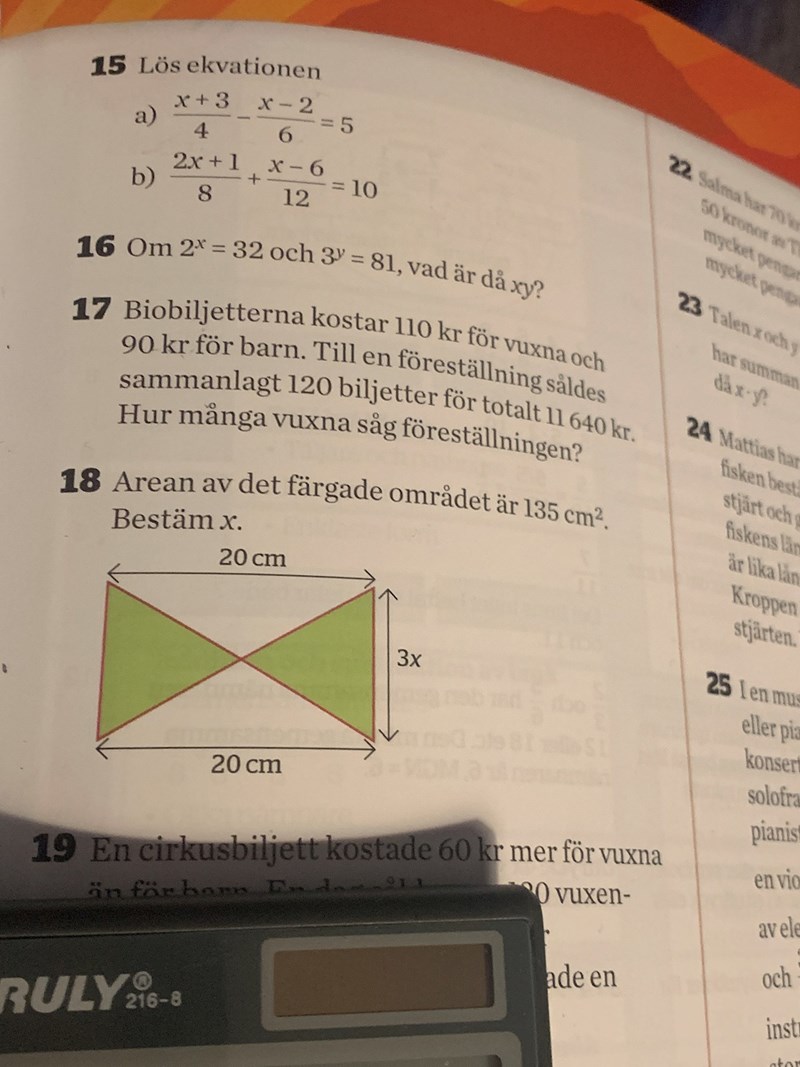 skrev nu V +B = 120 (ganska obvious) men vet liksom inte hur man kommer vidare från det