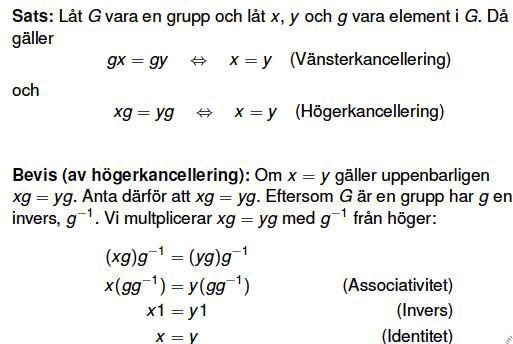 Om man vill undersöka huruvida två element är lika, så är det ju väldigt praktiskt att det det räcker att undersöka huruvida deras produkt med något tredje element är lika, ifall man t.ex. känner till dessa produkter, eller av någon annan anledning har lättare att bestämma dem är elementen själva.
