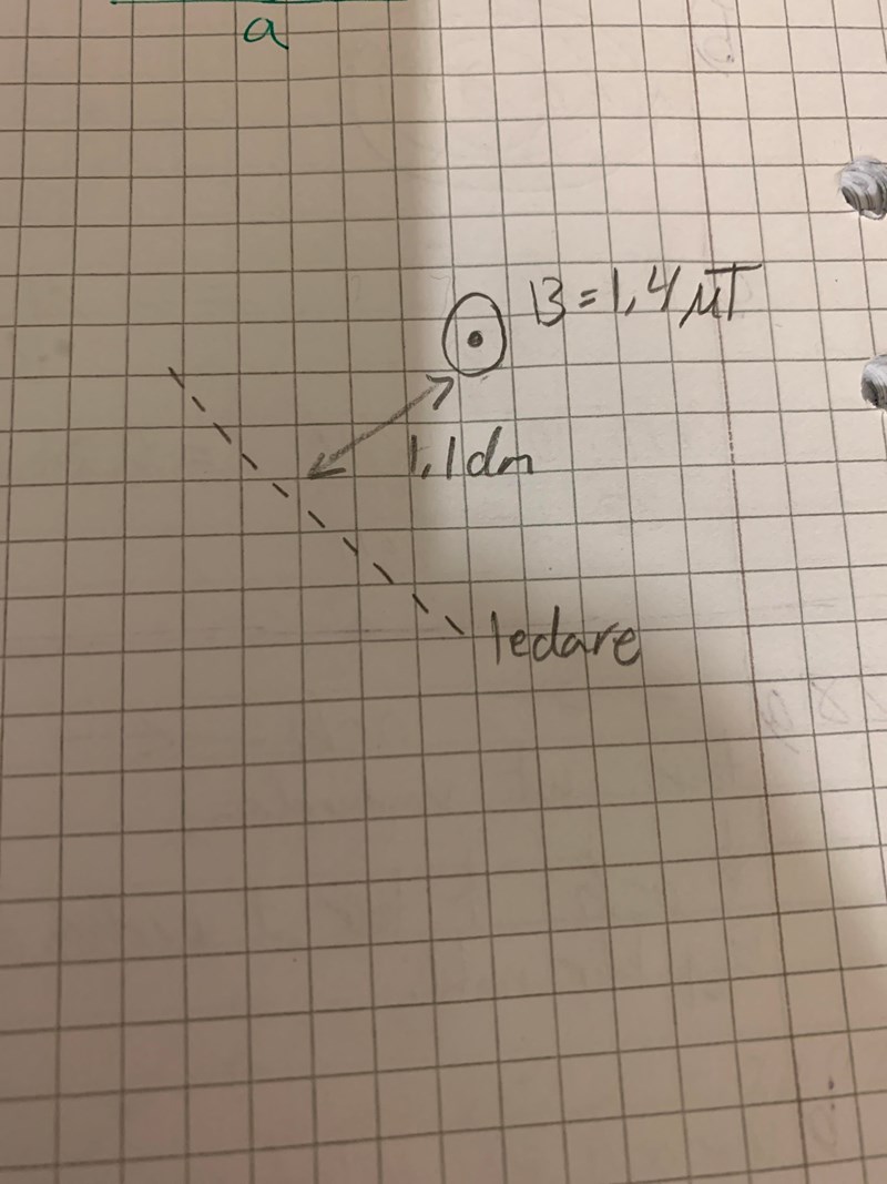 Jag missuppfattade nog uppgiften. Jag trodde den streckade linjen var en ledare och pricken med ring var magnetfältet.