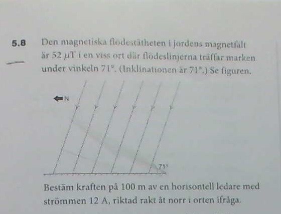 Läs texten igen. Strömmen är riktad rakt åt norr. Vilket blir ditt pekfinger. Sätt den åt norr så ser du att tummen blir till vänster = kraften & att magnetfältet är riktad nedåt.