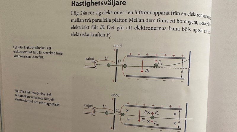 fner skrev:Inte den högerhandsregel som du tänker på tror jag. Kraften kommer från att elektronen attraheras mot det positivt laddade plattan.