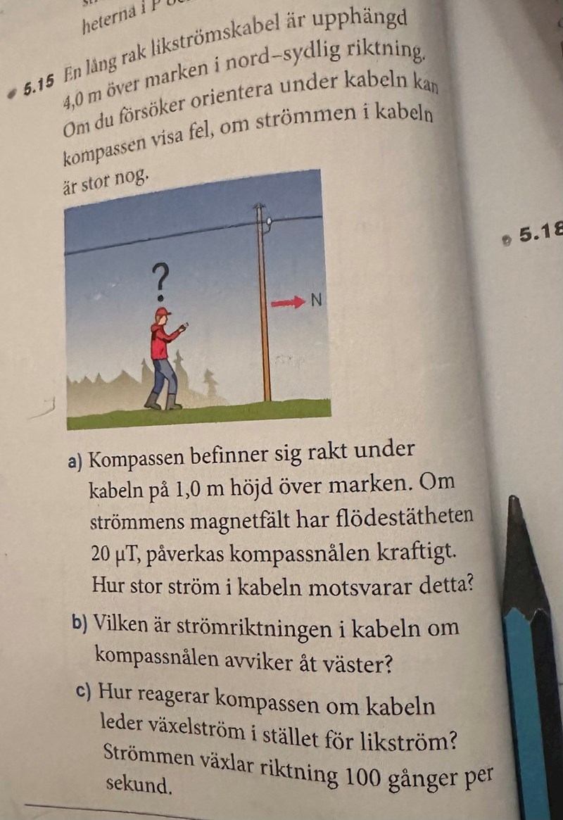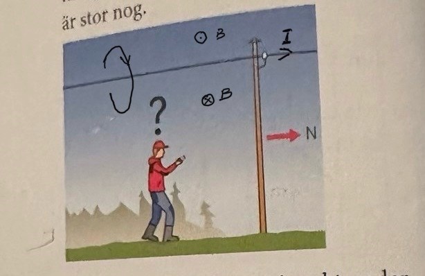 B-fältet under kabeln bör vara riktat åt väster. Då bör kabelströmmen gå norrut.