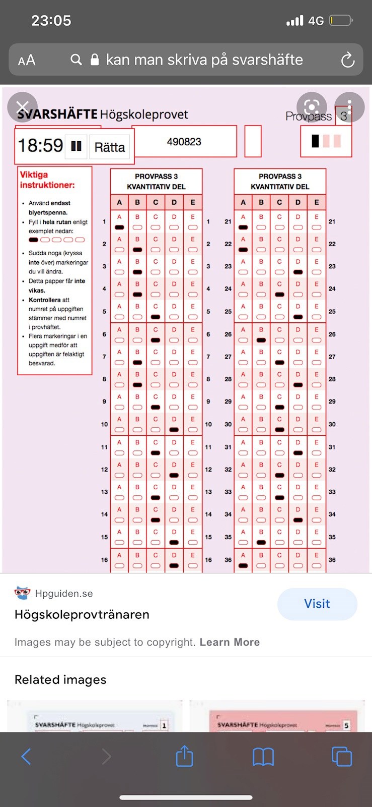 Högskoleprov svarshäfte