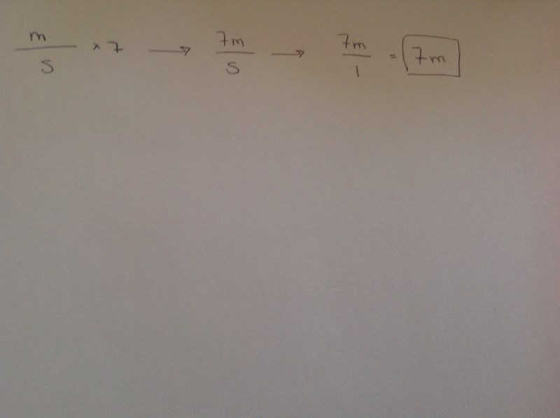 Nu vill du ha sträckan efter 7 minuter. Då gångrar man bara hastigheten med tiden, det ger