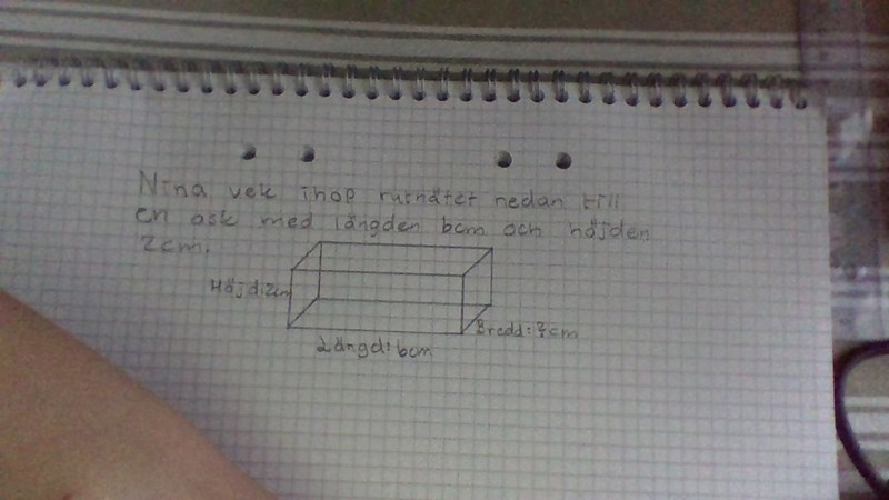 Jag vet att höjden är 2cm och jag vet att längden är 6cm. Men vad är då bredden?