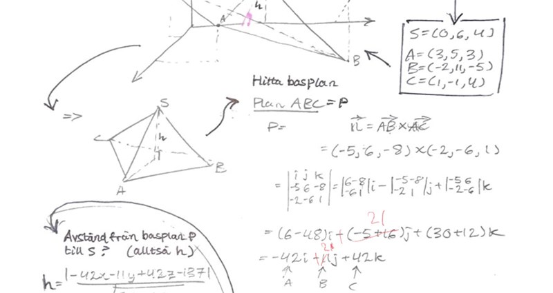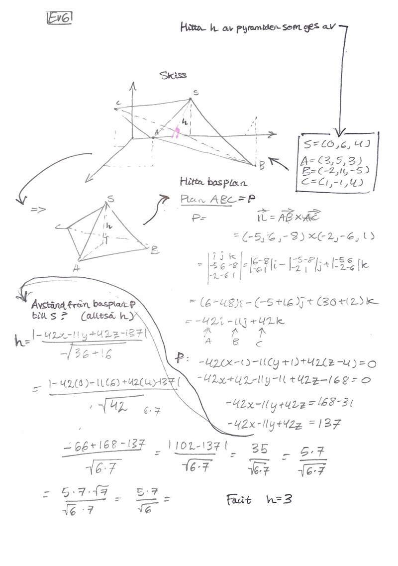 Höjden av pyramid med 4 hörnpunkter utifrån punkter i rummet