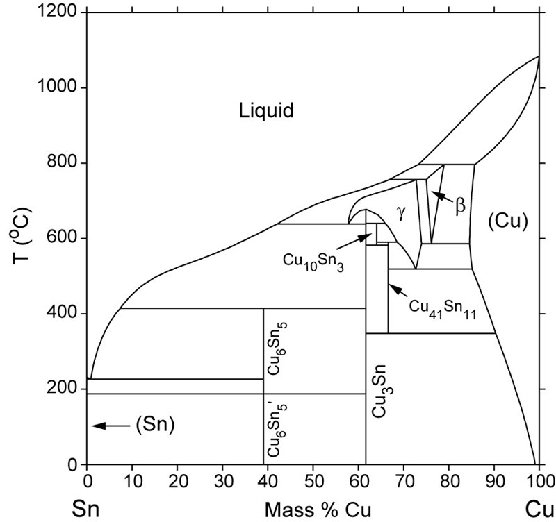 För att se det kan man studera ett s.k. fasdiagram för systemet tenn-koppar: