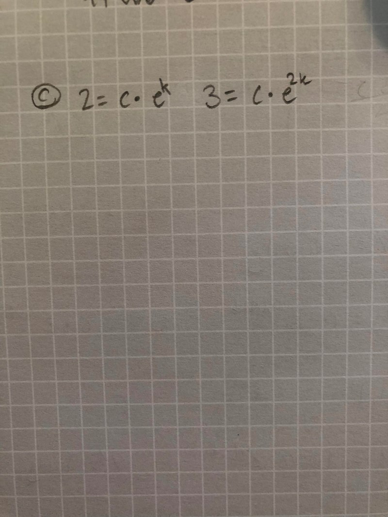 Bra början! Vad händer om du nu dividerar ekvationerna med varandra? Dvs. ? :)