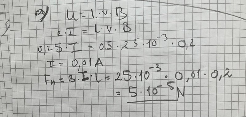 Här är alltså längden på stången och spänningen som induceras. Att det finns en spänning i en krets innebär att det finns en ström genom Ohms lag :