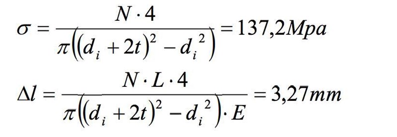 men jag får inte samma. För att räkna ut spänningen använde jag själv spänning = N/A där jag fick A till (((di/2)+t)^2 x pi) men det räcker uppenbarligen inte. Har man använt en till ekvation? Varför isåfall? och var får de 4 ifrån?