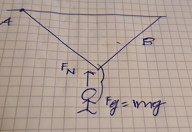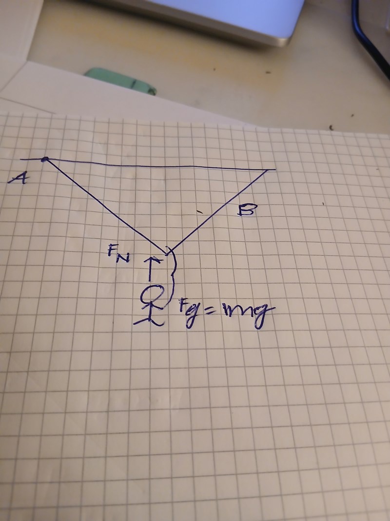 Här har du ritat ut FN som jag gissar är en normalkraft. Normalkraft är en kontaktkraft vinkelrät mot ytan ett föremål vilar på. Den hindrar föremålet från att tränga igenom ytan. Här står apan inte på något så det är inte aktuellt. Dessutom verkar din normalkraft utgå från apans huvud på något sätt.