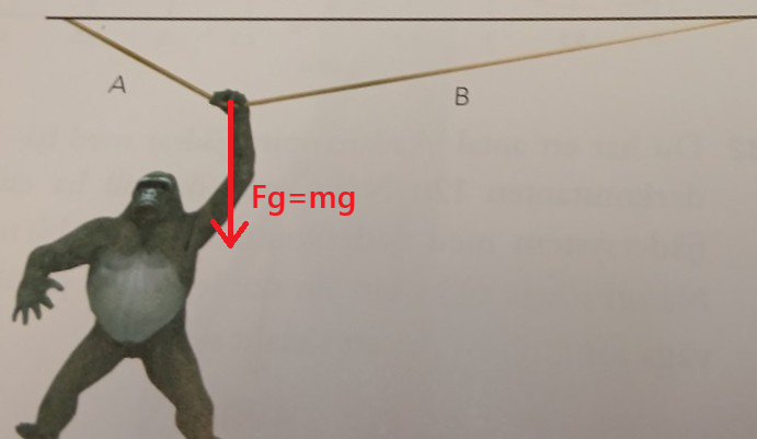 Precis när snöret går av verkar förstås Fg=mg på apan. Jag ritar ut den från apans hand för enkelhets skull.