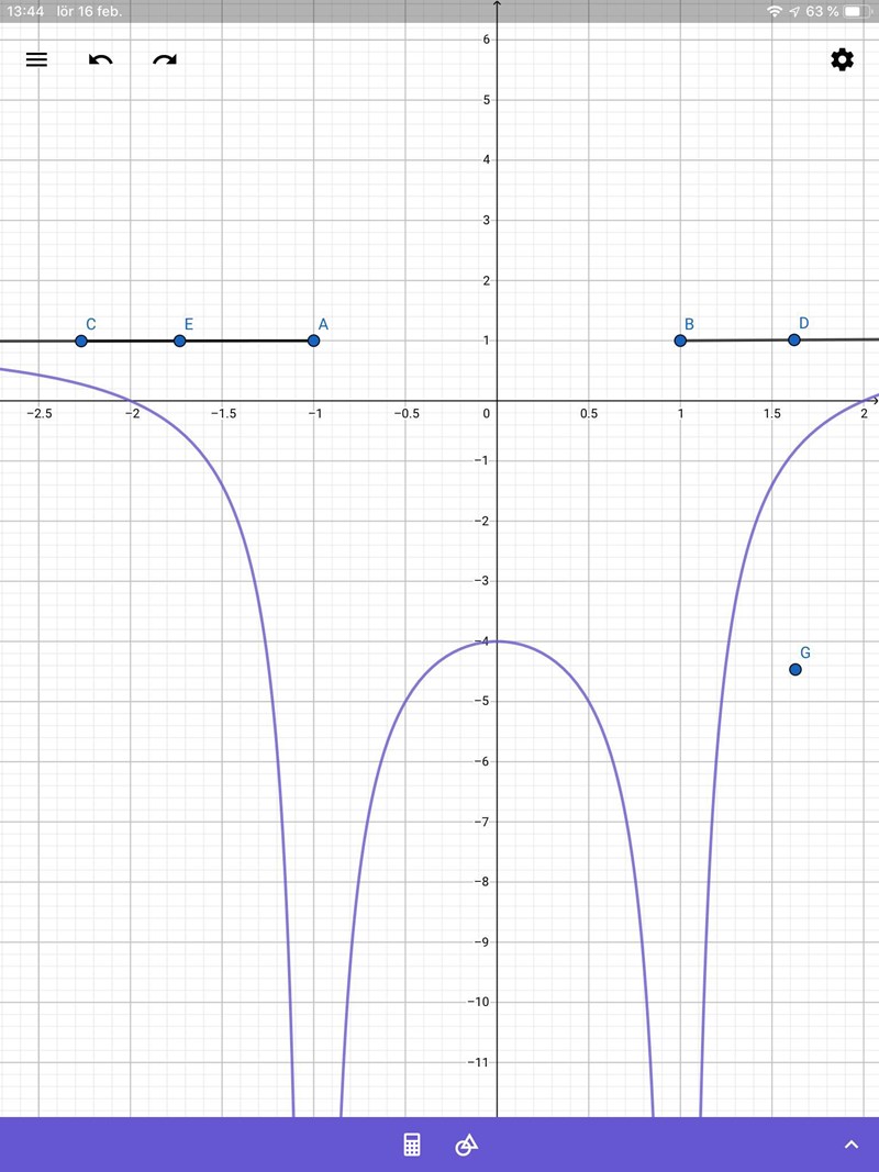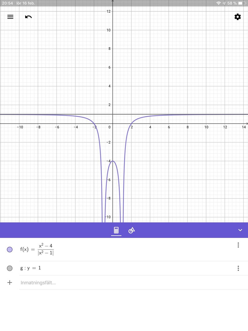 (X^2-4)/|x^2-1| har horisontell asyp?