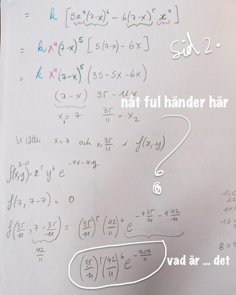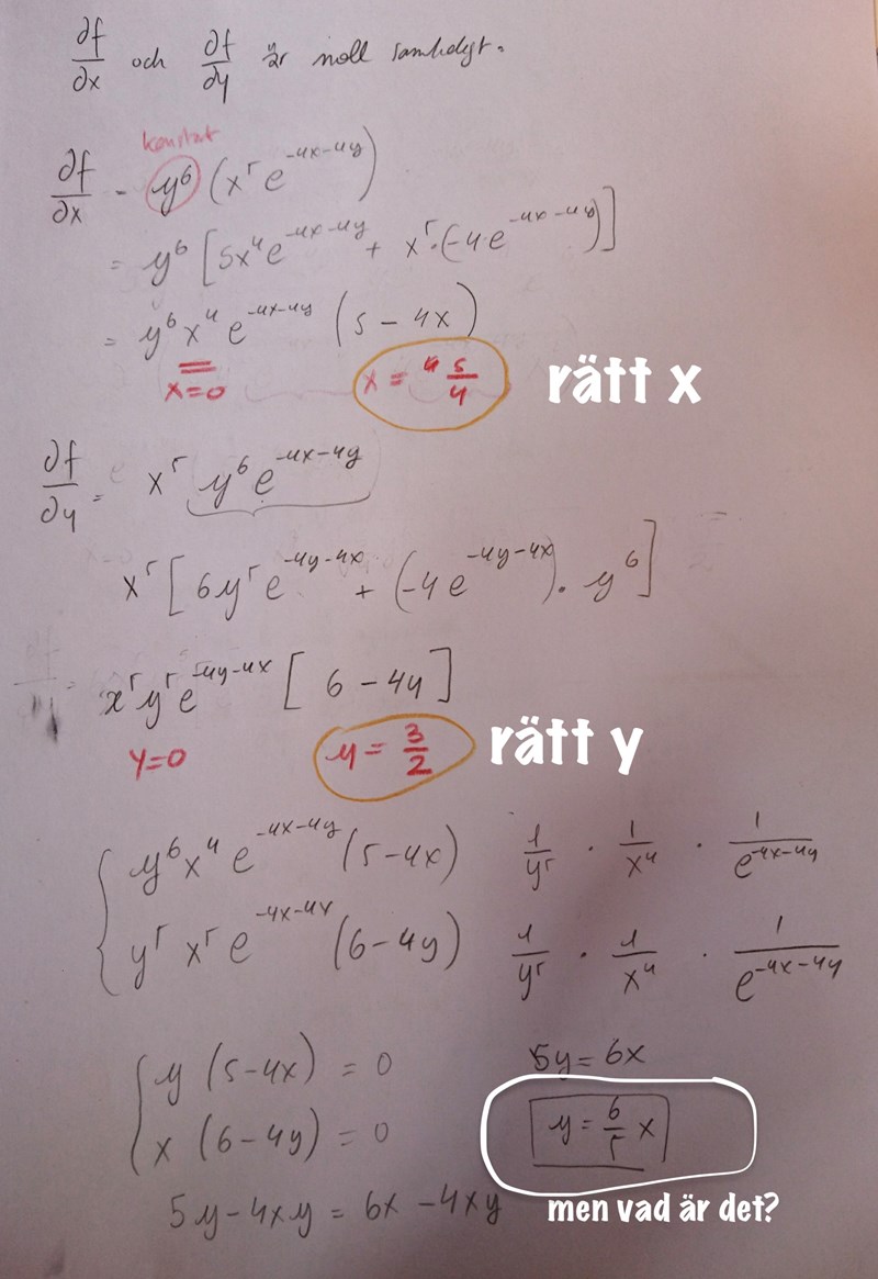 Men lite tidigare i mina beräkningar hittade jag en värde för och en för som gav mig maximum. Men jag förstådd inte varför.