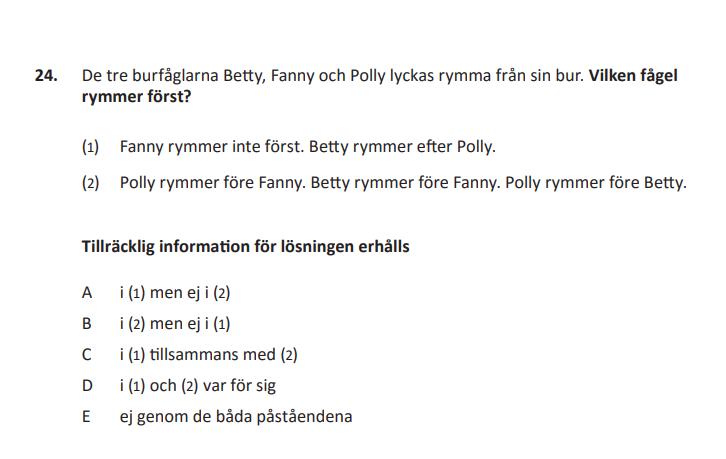 Frågan är inte vad den kompletta ordningen är på fåglarna, bara vilken som rymmer först. Jag håller med facit.