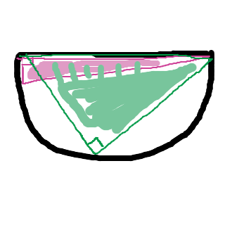 En rättvinklig triangel är inskriven i en halvcirkel. Triangelns längsta sida utgör diametern i en halv cirkeln. Triangelns längsta sida utgör diametern i halvcirkeln. Hur stor är differensen mellan de båda figurernas areor?