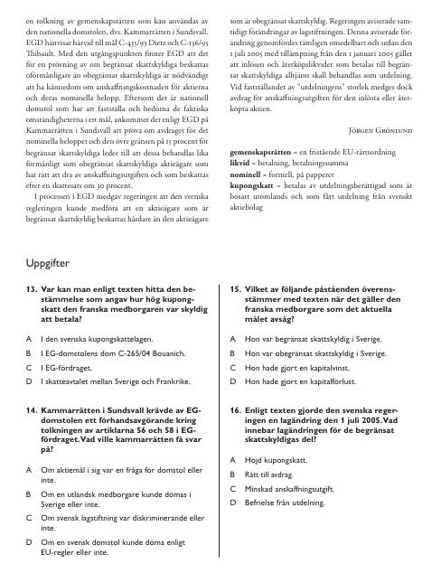 Nedanstående uppgift är hämtad från Högskoleprovets LÄS del 2010. Jag skulle vilja ha lite tips på hur man kan bäst svara på svarsalternativen med säkerhet under en begränsad tid.