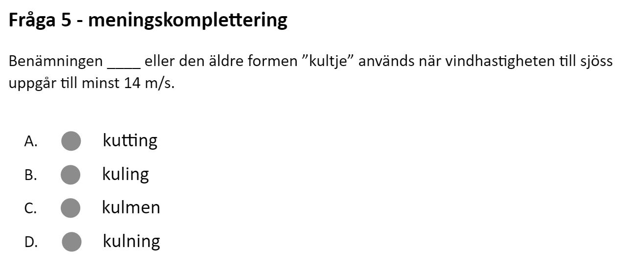 Om du med säkerhet ska kunna ringa in denna måste du antingen veta säkert att A, C och D är fel, eller att B kuling betyder precis detta. Man kan säga att det blåser kuling.