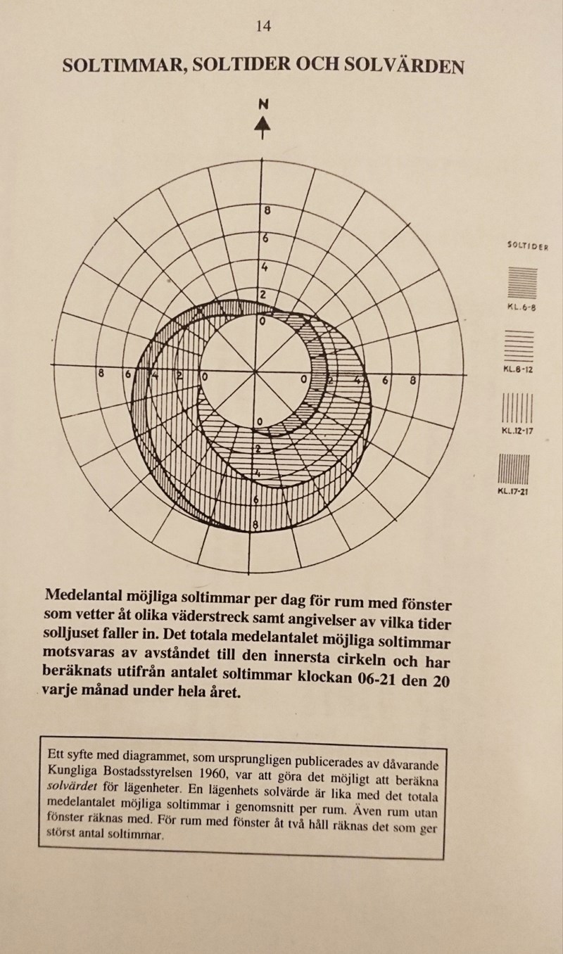 "En lägenhets solvärde är lika med det totala medelantalet möjliga soltimmar i genomsnitt per rumm. Även rum utan fönster räknas med"
