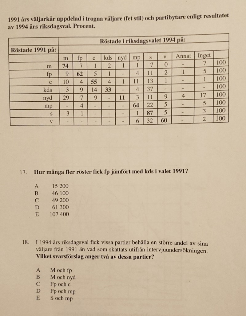 På frågan 18 tror jag att svaret är D