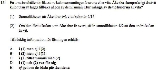Om x är antalet vita kulor, blir sannolikheten att dra en vit kula x/10. Om den första kulan är vit, är sannolikheten att dra en vit kula till (x-1)/9.