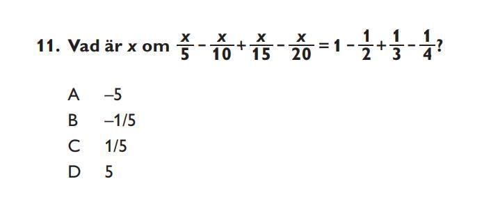 Meningen är att du ska pröva vilket av svaren som är rätt. Börja med det enklaste, D, och sätt in det i stället för x så ser du att det stämmer. Klart! Tar kanske fem sekunder totalt.