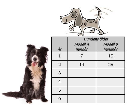 3.Hundar kan bli gamla. Det är inte ovanligt att de lever minst 14 år. Jämför de båda modellerna när det gäller hundens livslängd (antal hundår). Vilken av modellerna är mest rimlig? Motivera dina slutsatser.
